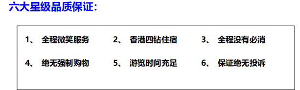 酒店:国内段网评三钻酒店,香港升级一晚网评四钻酒店,B 线路澳门住宿一晚网评三钻